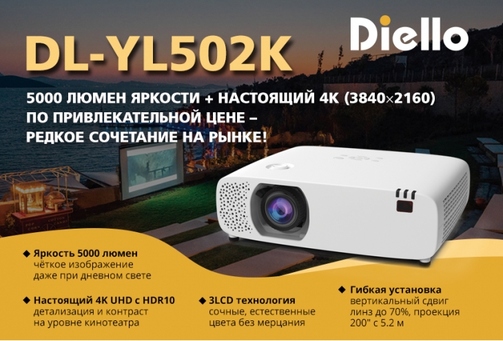 Diello продолжает развитие линейки доступных и качественных проекторов, зажигая новую звезду в сегменте компактных лазерных моделей с поддержкой 4К.