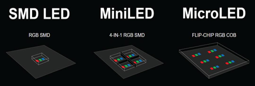 Дмитрий Яруллин: Если сравнивать между собой microLED, MiniLED и обычный SMD, то тут все достаточно просто. Они отличаются по размеру светодиодного чипа. 200 микрон — это SMD, 50-200 микрон — MiniLED и меньше 50 микрон — microLED. С технологиями установки светодиодов на поверхность уже несколько сложнее, так как их сегодня появляется все больше. Стандартный SMD (Surface Mounted Device) представляет собой поверхностный монтаж, когда у вас есть корпус, диоды и контакты. Хоть производители и стараются обеспечить максимально широкие углы обзора, тем не менее, под определенными углами изменения в изображении, все таки, могут быть.