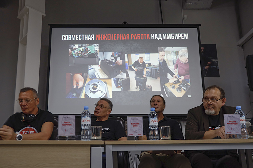 Центральная часть пресс-конференции была посвящена ответам на вопросы представителей российского AV-сообщества и профильных изданий, в которой, помимо основателей «Урал» и ARIS, а также инженерной группы, приняли участие Дарья Бахманова, исполнительный директор ARIS, и Алексей Марасанов, директор компании «Визард», первой в конце 2024 года купившей себе в прокат громкоговорители Имбирь.