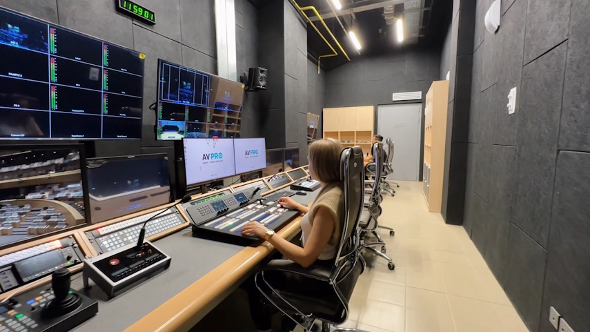 Профессиональный центр видеомонтажа и трансляции, оснащенный кинокамерами и роботизированными камерами, позволяет вести многокамерную съемку и прямые эфиры из любого зала. Визуальный контроль обеспечивает система технологического телевидения с 35 HD-камерами, 38 PTZ-камерами, 66 панелями и 35 студийными мониторами. Управление всеми медиапотоками ведется со специализированных рабочих станций режиссера, звукорежиссера и монтажера.