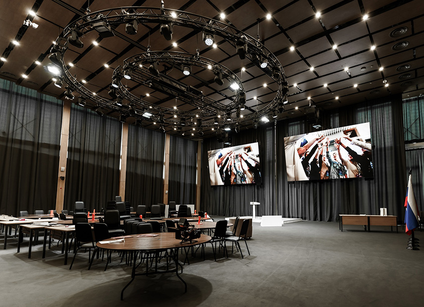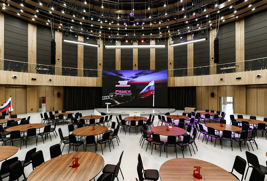 В результате комплексного оснащения 36 мультимедийных зон были объединены в единую экосистему. Теперь центр позволяет проводить мероприятия любого масштаба – от камерных семинаров до международных форумов, культурно-досуговых программ, праздников и концертов. Техническая инфраструктура отвечает самым строгим техническим требованиям (райдерам), а система трансляции и записи обеспечивает онлайн-доступ ко всем событиям.