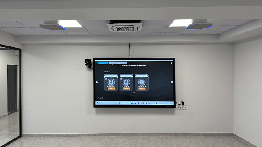 По итогам тщательного изучения всех аспектов проблемы и проведенных на месте работ по тестированию оборудования проектант остановил свой выбор на системе потолочных спикерфонов со встроенными микрофонными массивами FONE700. Это профессиональное решение от компании AVer Information Inc., которое было представлено в начале 2025 года и отличается наилучшим соотношением «цена / качество».