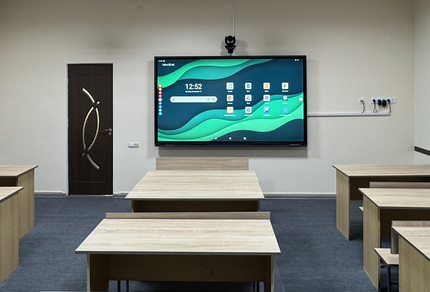 В проекте задействовали 98-дюймовые модели Newline TT-9823QA и опциональные встраиваемые OPS компьютеры того же бренда с мощным процессором Intel i7, 16 ГБ оперативной памяти, SSD-накопителем объемом 256 ГБ и предустановленными ОС Windows 11 и ПО MS Office 2019.