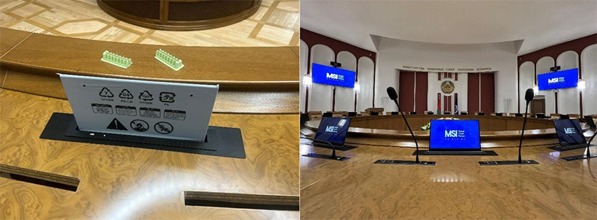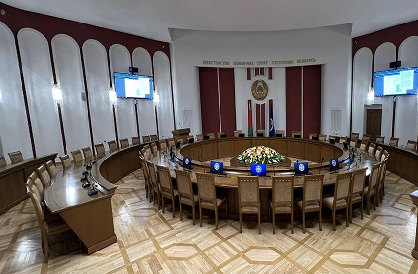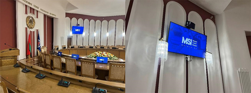 Министерство иностранных дел Республики Беларусь выполняет ключевую роль в реализации внешней политики государства, регулярно проводя официальные встречи на высоком уровне. Специфика таких мероприятий предъявляет повышенные требования к качеству аудиовизуального сопровождения. Онлайн-переговоры в гибридном или полностью дистанционном форматах и подключение зарубежных партнеров по защищенным каналам связи стали неотъемлемой частью современной дипломатической практики. В связи с этим МИДу потребовалась модернизация технического оснащения основного зала заседаний и пресс-холла. Для реализации проекта по поставке, монтажу и пусконаладке оборудования в качестве субподрядчика была привлечена компания ООО «МедиаСтройИмидж».