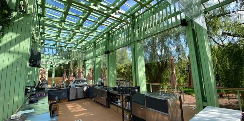 Заказчик хотел получить равномерное покрытие фоновым звуком всей территории и возможность проведения мероприятий с участием диджеев и других артистов, при этом требовалось удобное централизованное управление и соблюдение строгих условий эксплуатации: защита оборудования от неблагоприятных погодных воздействий, надежность и долговечность.
