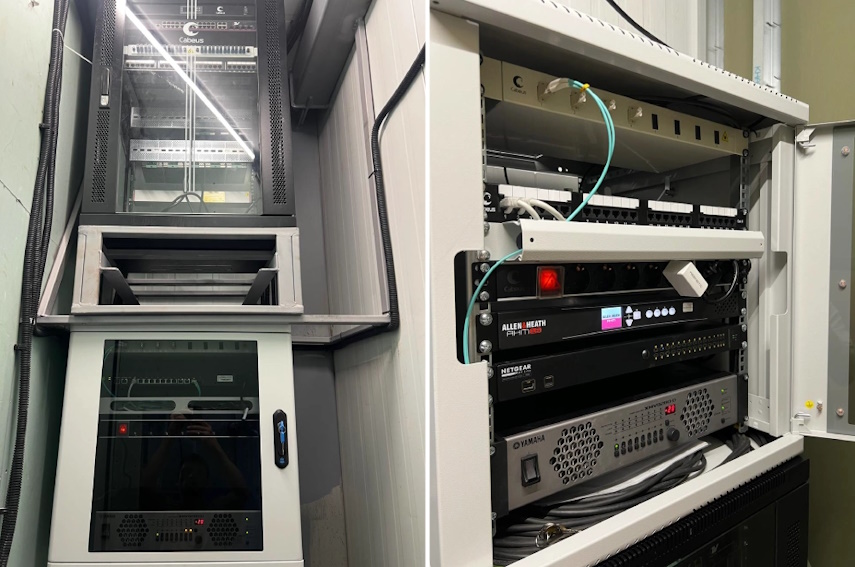 Развернутая система разделена на 13 зон, каждая из которых может управляться индивидуально, что позволяет адаптировать конфигурацию под различные сценарии эксплуатации. Минимизировать количество кабельной разводки и упростить настройку помогло использование сети Dante. Для соединения ключевых зон было задействовано оптоволокно, решившее проблему длинных кабельных трасс, улучшившее стабильность и скорость передачи данных. Упрощает эксплуатацию внедрение пресетов для управления звуком.