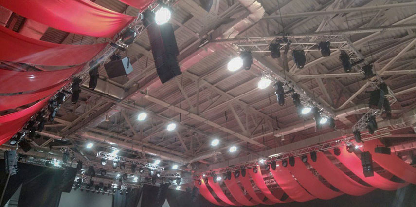 Все потребности этого проекта закрыло оборудование RCF. В рамках проведенных работ были установлены подвесные линейные массивы, в состав которых вошли 18 пассивных двухполосных элементов HL 6 и 8 сабвуферов HL 35-S, а также 4 громкоговорителя COMPACT C45 и 4 усилителя: 2 – XPS 16K и 2 – XPS 16KD. Система мониторинга центра организована на базе 2 активных мониторов NX 15-SMА.