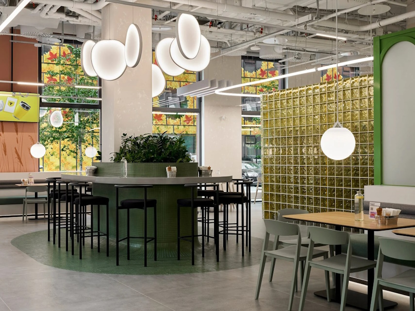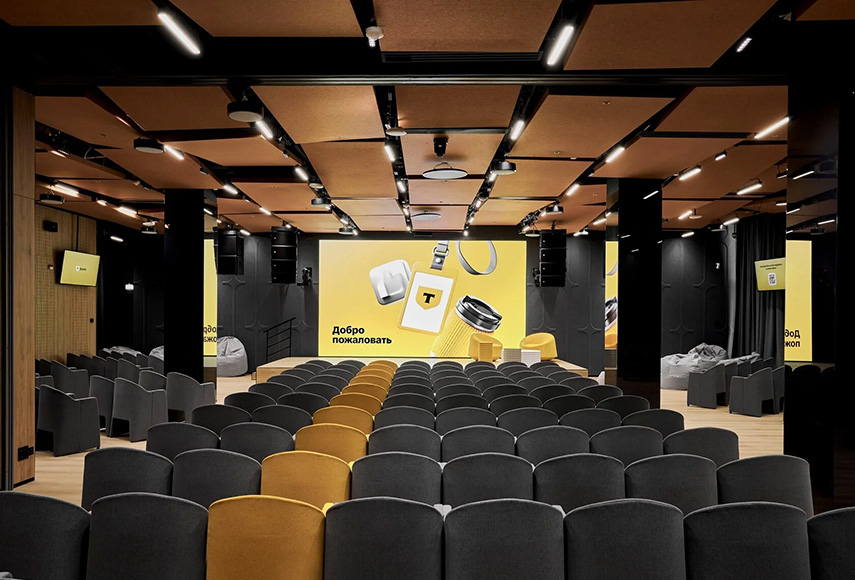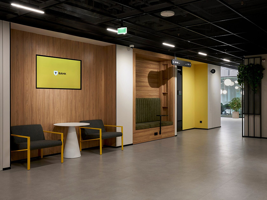 ИТ-хаб группы «Т-Технологии» в Санкт-Петербурге — это флагманский офис компании на северо-западе России. Пространство расположено в бизнес-центре Ferrum II на Свердловской набережной и спроектировано по принципу «город в городе». Оно занимает десять этажей и включает различные функциональные пространства: рабочие зоны, переговорные комнаты, коворкинги, столовую, фитнес-зоны, террасу, зоны отдыха, мини-кофейни самообслуживания и служебные помещения, где могут одновременно работать до 2500 специалистов. При таком масштабе важно, чтобы сотрудники легко ориентировались, своевременно получали информацию и могли взаимодействовать с цифровой инфраструктурой офиса.