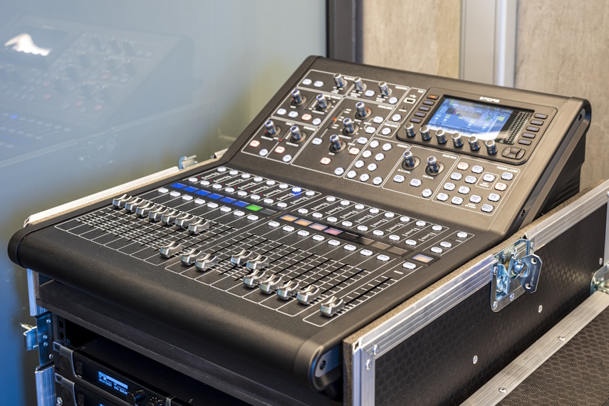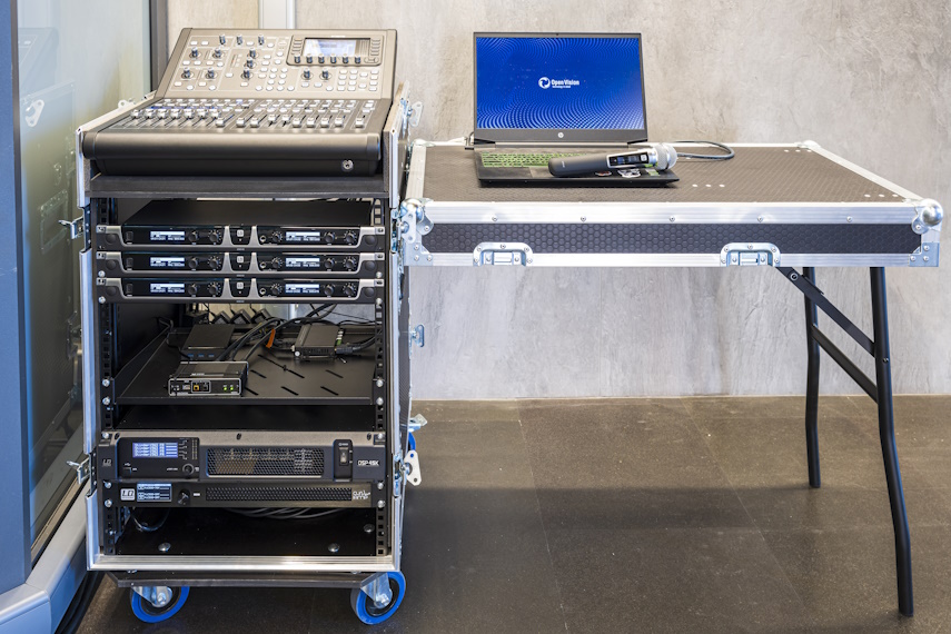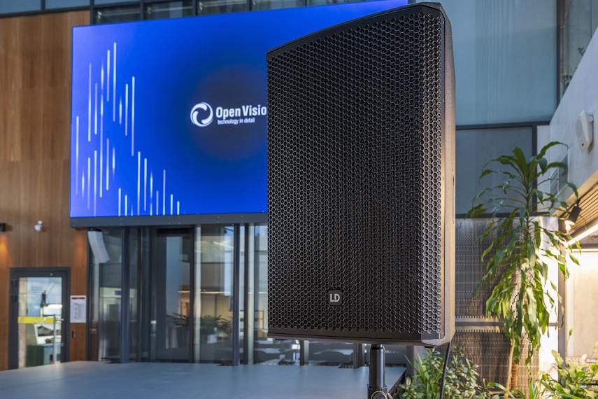 Система звукоусиления включает стационарные компактные линейные массивы LD Systems CURV 500, применяемые для воспроизведения фоновой музыки и речи. Для проведения более масштабных мероприятий они могут быть дополнены мобильным комплектом сабвуферов LD Systems Stinger SUB 15. За захват голосов выступающих отвечает радиомикрофонная система с ручными передатчиками. Маршрутизация и обработка аудиосигналов выполняется с помощью цифрового микшерного пульта Midas M32 Live. Грамотная настройка развернутой системы помогла оптимизировать качество звука в помещении.