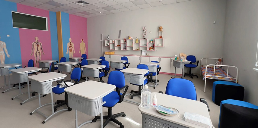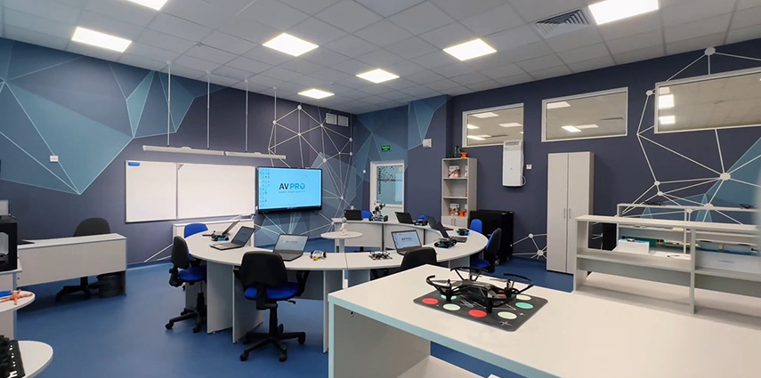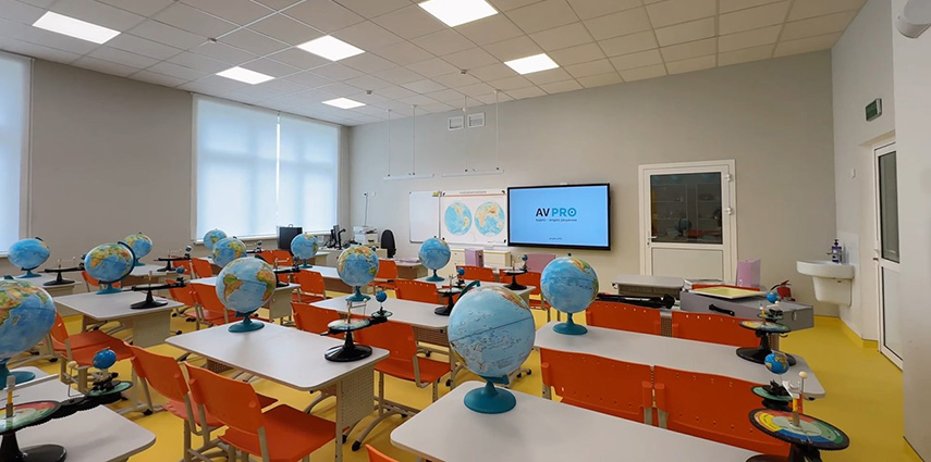 Все аудиовизуальные и инженерные системы были интегрированы на этапе отделочных работ. Помимо поставки техники, заказчику были предоставлены учебные материалы, соответствующие требованиям ФГОС.