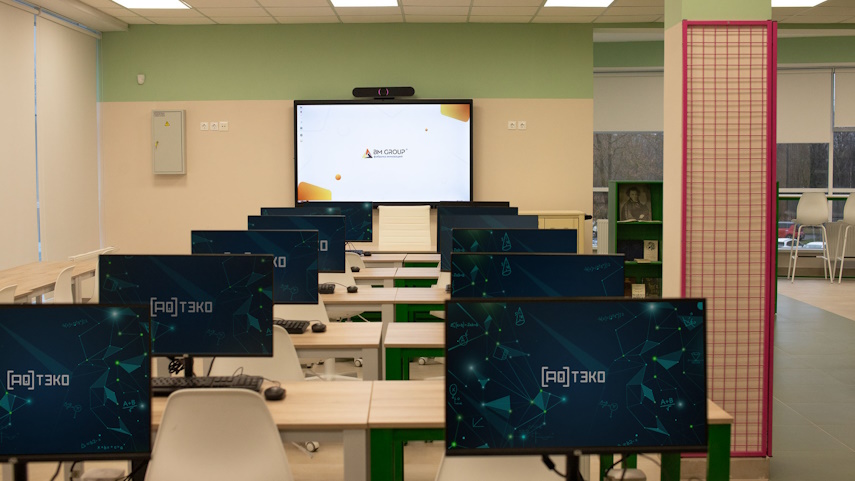 В кабинете химии интегратор реализовал автоматизированное рабочее место преподавателя. Оно оборудовано раздвижным интерактивным комплексом BM GROUP и персональным компьютером для наглядной демонстрации учебных материалов и управления занятием. Для практической части уроков установлена цифровая лаборатория, позволяющая проводить точные измерения и в режиме реального времени визуализировать ход экспериментов с представлением данных в виде графиков и таблиц.