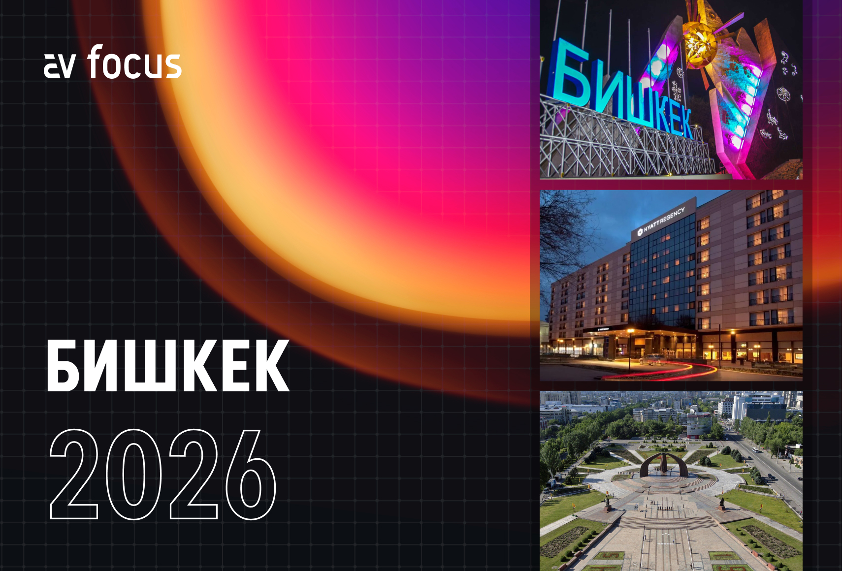 AV FOCUS Бишкек 21 мая 2026 09:00 — 17:00 Отель «Hyatt Regency Bishkek» Бишкек, ул. Жусупа Абдрахманова, 191