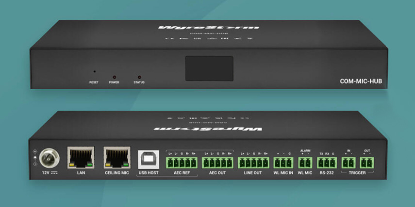 COM-MIC-HUB позволяет добавить в видеоконференцию дополнительные микрофоны любого производителя, будь то динамические, конденсаторные либо радиомикрофонные системы, а также вывести звук на усилитель внешней системы звукоусиления. В устройство интегрированы аудиомикшер и DSP-процессор с алгоритмами автоматической регулировки усиления, эхо- и шумоподавления. Для централизованного управления предусмотрены порт RS-232 и удобный веб-интерфейс.