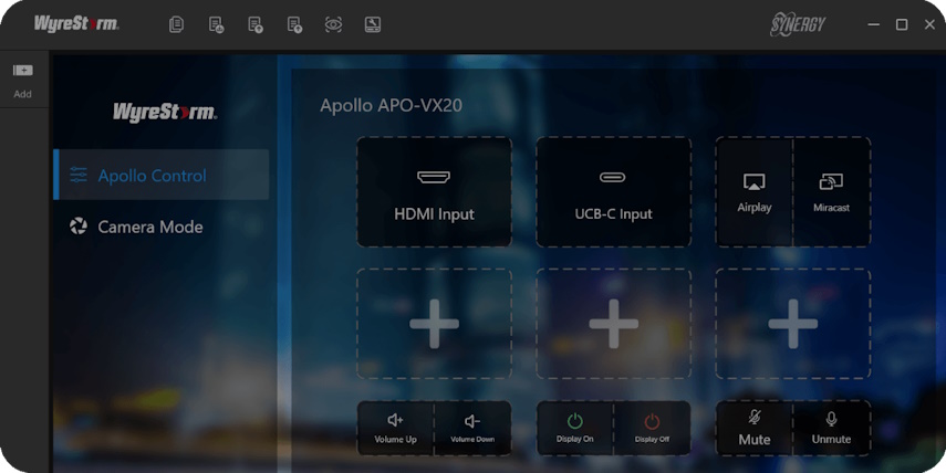 Для комфортной эксплуатации мультимедийного оборудования переговорной и других помещений необходима централизованная система управления. До недавнего времени у WyreStorm уже были все базовые элементы — 10-дюймовая сенсорная панель SYN-TOUCH10 v2, которая дает возможность создавать графический интерфейс, выстраивать логику под клавиши и контролировать работу системы, а также блок расширения SYN-CTL-HUB для подключения устройств, не поддерживающих управление по сети. Это помогает интегрироваться с системой освещения либо добавить датчики движения или присутствия и автоматизировать процесс включения-выключения или переключения режимов эксплуатации помещения.