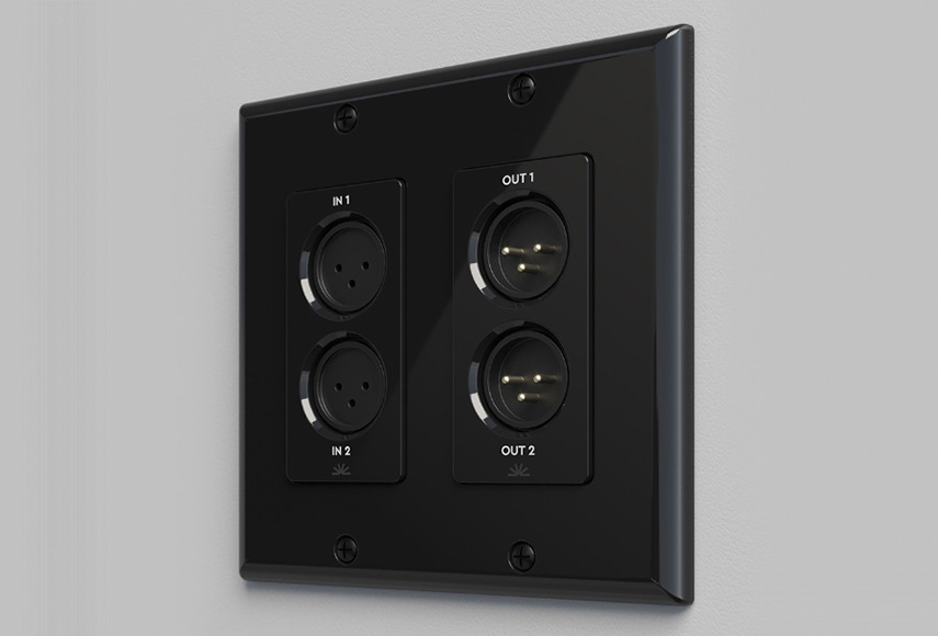 Самая простая из всех панелей с 2 балансными выходами и 2 балансными выходами на разъемах XLR обязательно должна быть в любой инсталляции, так как очень часто требуется пустить аналоговый сигнал в сеть или забрать его оттуда. Gio XLR поддерживает управление этими сигналами, тем, как они обрабатываются, допускает регулировку входного уровня, включение и выключение фантомного питания. Это можно использовать для множества задач. Например, пригласить выступить музыкальный коллектив на какой-то корпоративный праздник, включить его в общую систему и не заморачиваться.