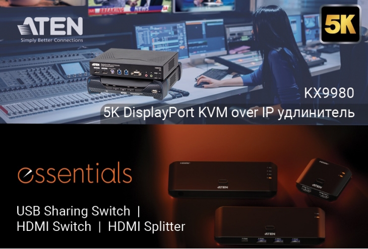 На стенде ATEN будет представлена новая линейка Essentials, а также первый в отрасли KVM-удлинитель по IP с поддержкой USB 3.2 и разрешения 5K.