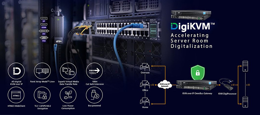Компания ATEN представила первое в индустрии полностью цифровое решение класса KVM over IP. DigiKVM снабжено единым порталом управления, встроенным модулем шифрования FIPS 140-3 и предназначено для централизованного контроля критически важных систем.