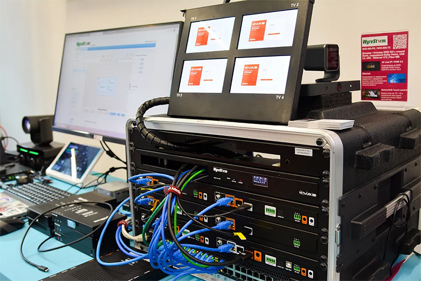 Для распределения сигналов будет показаны решения хорошо известных в отрасли брендов WyreStorm (мультиоконный коммутатор MV-0401-PRO и презентационный коммутатор SW-620-TX-W) и ATEN (модульный процессор видеостен VW1608).