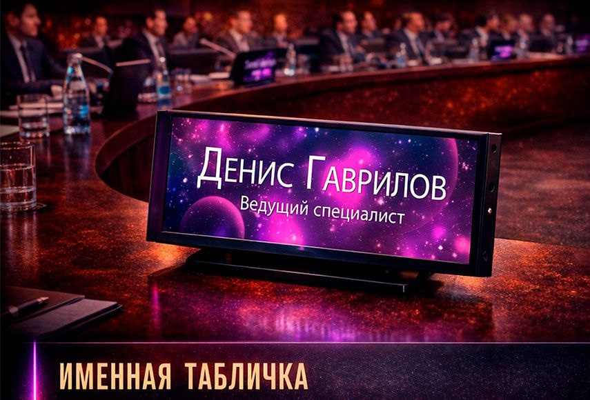 Другим интересным решением будут электронные именные таблички, являющиеся современной альтернативой бумажным носителям информации для конференций, деловых мероприятий и выставок. Они управляются удаленно, позволяя мгновенно менять информацию. Стильный дизайн устройств органично дополнит любой интерьер. Выпускаются таблички с диагональю 12,6 и 14,5 дюймов.