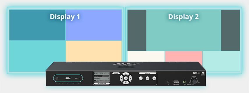 AVer MT500 получил три входа HDMI и два USB 3.0, два выхода HDMI, два USB 3.0 и два IP. С его помощью можно выводить два независимых видеопотока, например, один для демонстрации на устройстве отображения, а второй — для записи, стриминга или отправки в видеоконференцию. Контент может записываться напрямую в сетевое хранилище (NAS) или на внешний USB-накопитель.