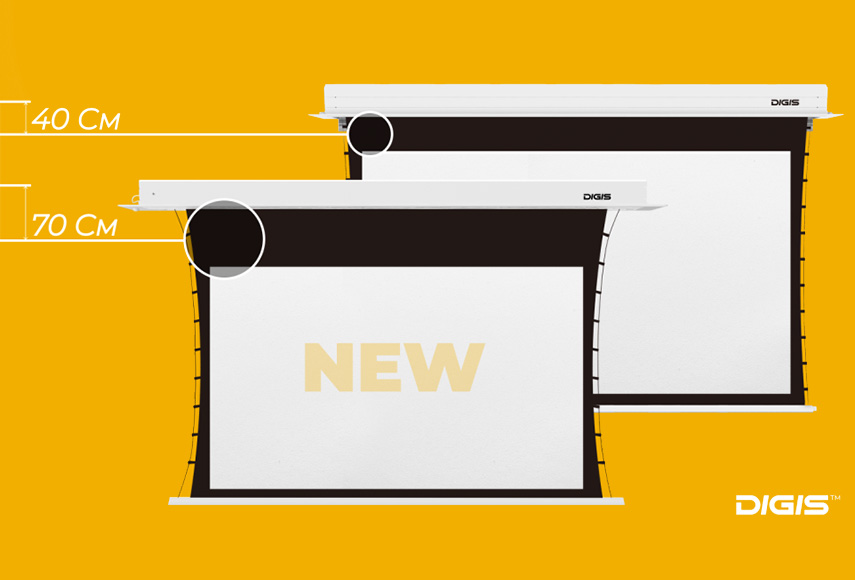 Серия встраиваемых проекционных экранов Paramount бренда Digis пополнилась пятью новыми моделями: DSIT-16909-70, DSIT-16910-70, DSIT-16912-70, DSIT-16913-70 и DSIT-16915-70. Их главное отличие — увеличенная до 70 см высота экстрадропа.