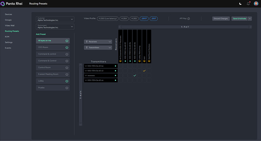 Функциональные возможности решения включают гибкое распределение AV-сигналов, создание сложных схем маршрутизации, в том числе виртуальных матриц, сохранение, вызов и редактирование пресетов коммутации, построение видеостен (сетчатой и мозаичной структуры), KVM-роуминг, мониторинг состояния устройств и сети, осуществляемый в режиме реального времени, обновление прошивок оборудования, просмотр журнала событий, а также предоставление пользователям различных уровней доступа. Для удобной интеграции с системой Kramer Control и любыми платформами управления сторонних производителей AVoIP Manager снабжен открытым программным интерфейсом на основе API.