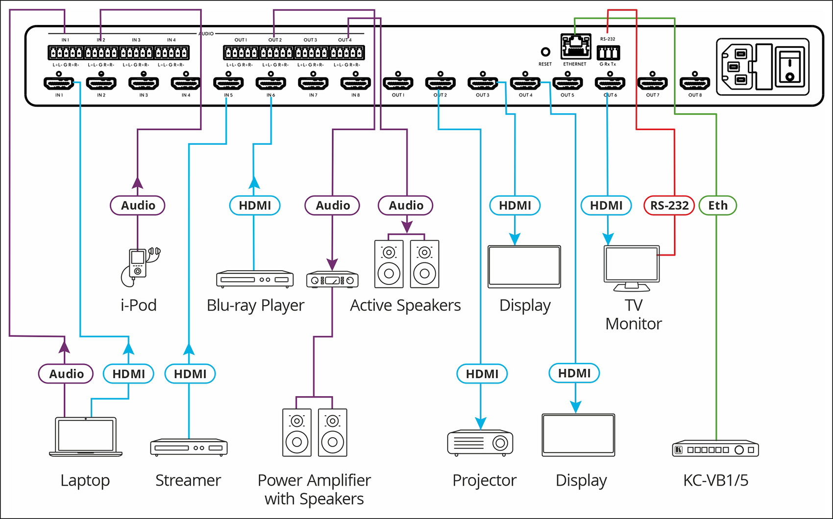 Линейку оборудования для распределения сигналов компании Kramer пополнил новый матричный коммутатор MTX3-88-HSA. Он снабжен 8 HDMI-входами и 8 HDMI-выходами, поддерживает разрешение до 4K@60 (4:4:4) и подходит для для конференц-залов, лекционных аудиторий, залов совещаний, центров принятия решений, диспетчерских пунктов и многих других объектов.