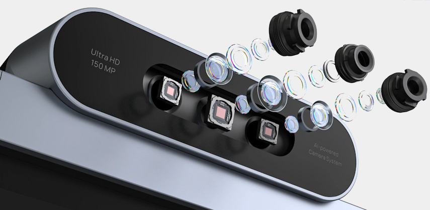Встроенная система из трех камер с разрешением 50 Мп каждая, снабженная телеобъективами и широкоугольными объективами, обеспечивает качественный захват изображения даже на большом удалении от объекта съемки. Оптимизировать съемочный процесс помогут интеллектуальные функции: On-device IntelliFocus — автоматическое выделение активного выступающего и Video Fence — ограничение видимой области для повышения конфиденциальности и устранения отвлекающих факторов.