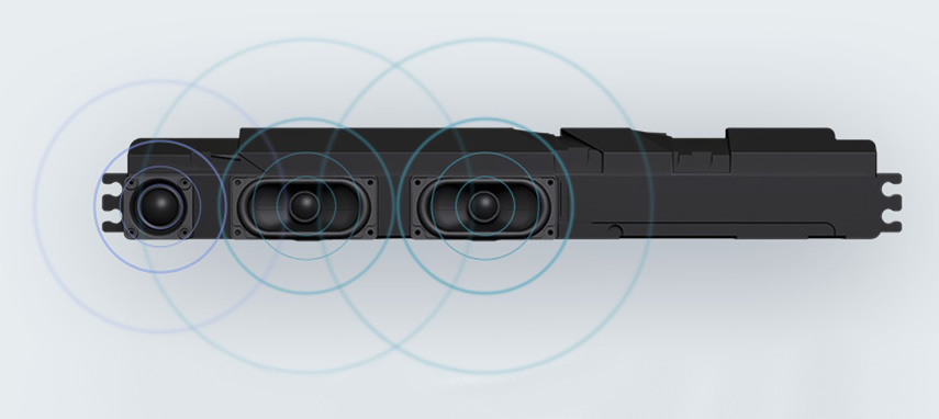 Для воспроизведения звука предусмотрена качественная стререосистема мощностью 36 Вт, которой будет достаточно даже для эксплуатации устройства в больших конференц-залах. За захват голосов спикеров, расположенных на удалении до 12 метров, отвечает массив из 16 MEMS-микрофонов. Повысить разборчивость речи помогают алгоритмы аудиообработки на основе искусственного интеллекта.