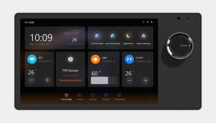 Серия тач-панелей включает: 4-дюймовую настенную модель, 6-дюймовую настенную модель с колесом, 8-дюймовую настенную модель с колесом и возможностью беспроводного подключения (Wi-Fi) и 10-дюймовую модель, допускающую как настенную, так и настольную установку.